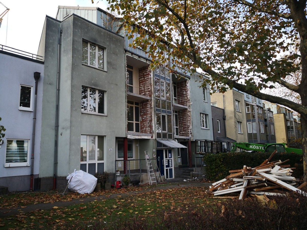 Unter dem Namen "Tor zur Südstadt" wird in umfassenden Maßnahmen der große Gebäudekomplex mit insgesamt 40 Wohneinheiten von Grund auf saniert.